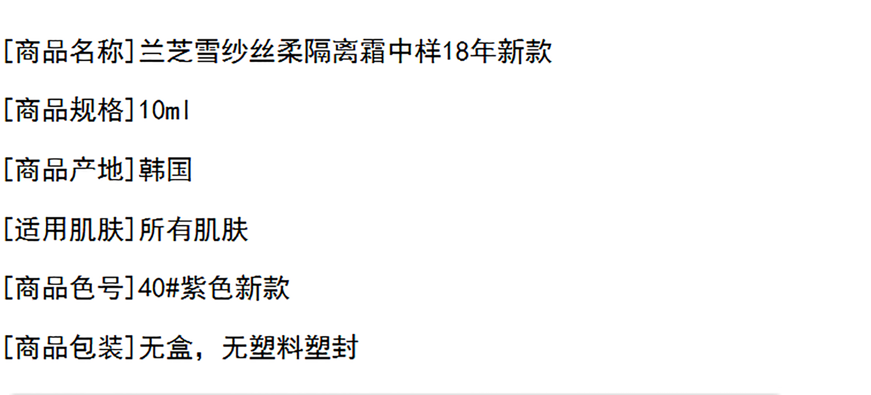 韩国 LANEIGE/兰芝 隔离中样 紫色 10ml