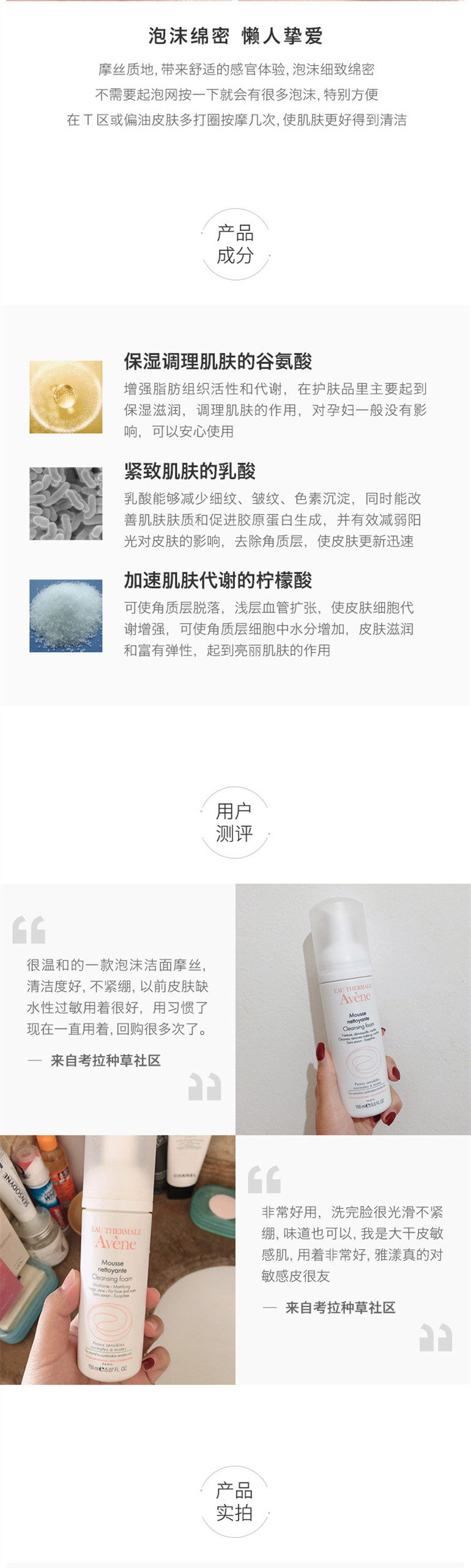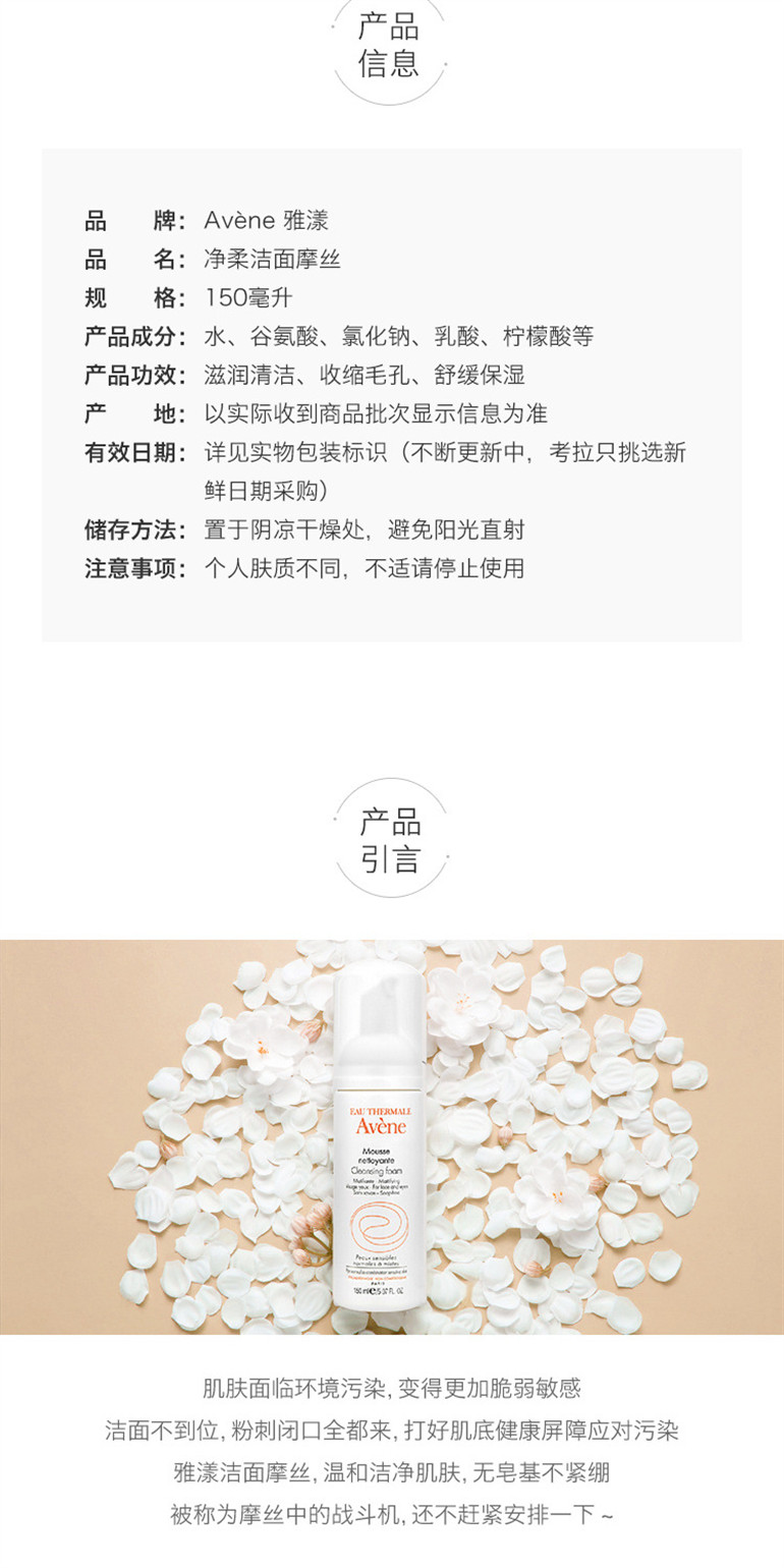 Avene/雅漾 净柔洁面摩丝 氨基酸泡沫洗面奶 150ml