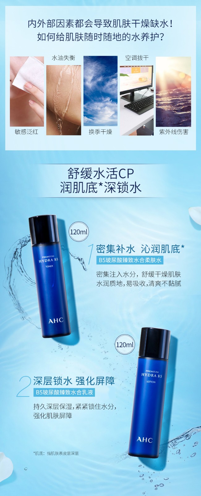 韩国AHC水乳套装B5玻尿酸保湿水乳120ml+120ml