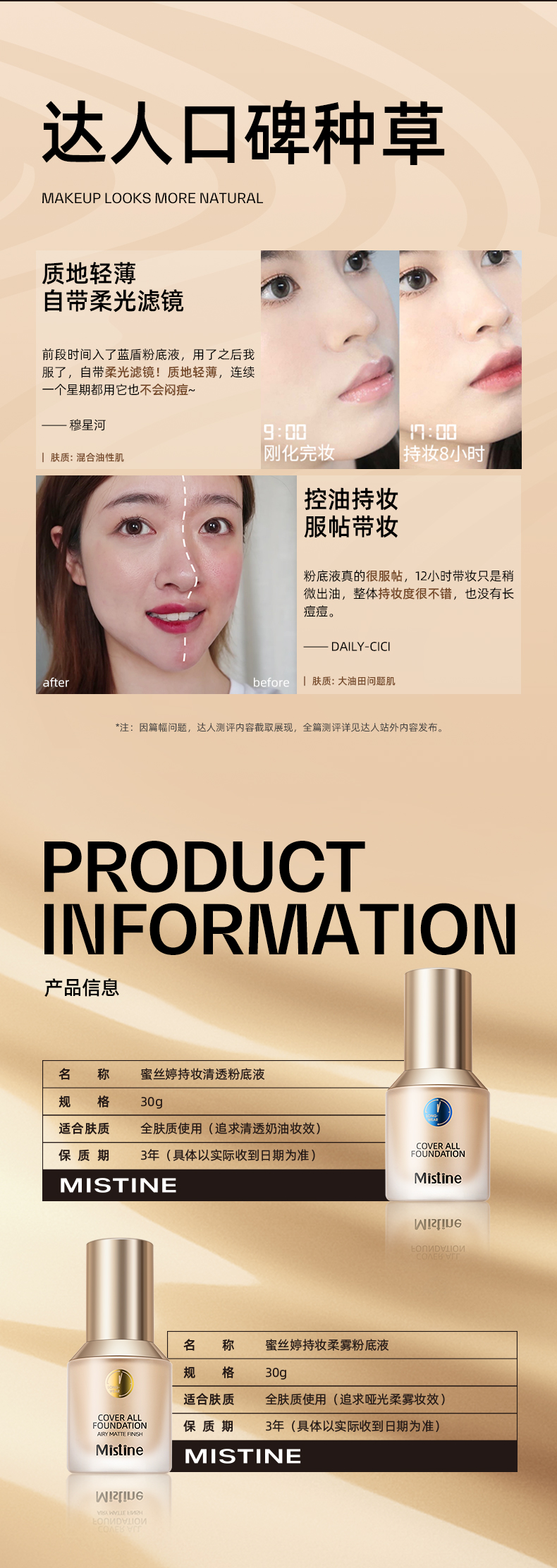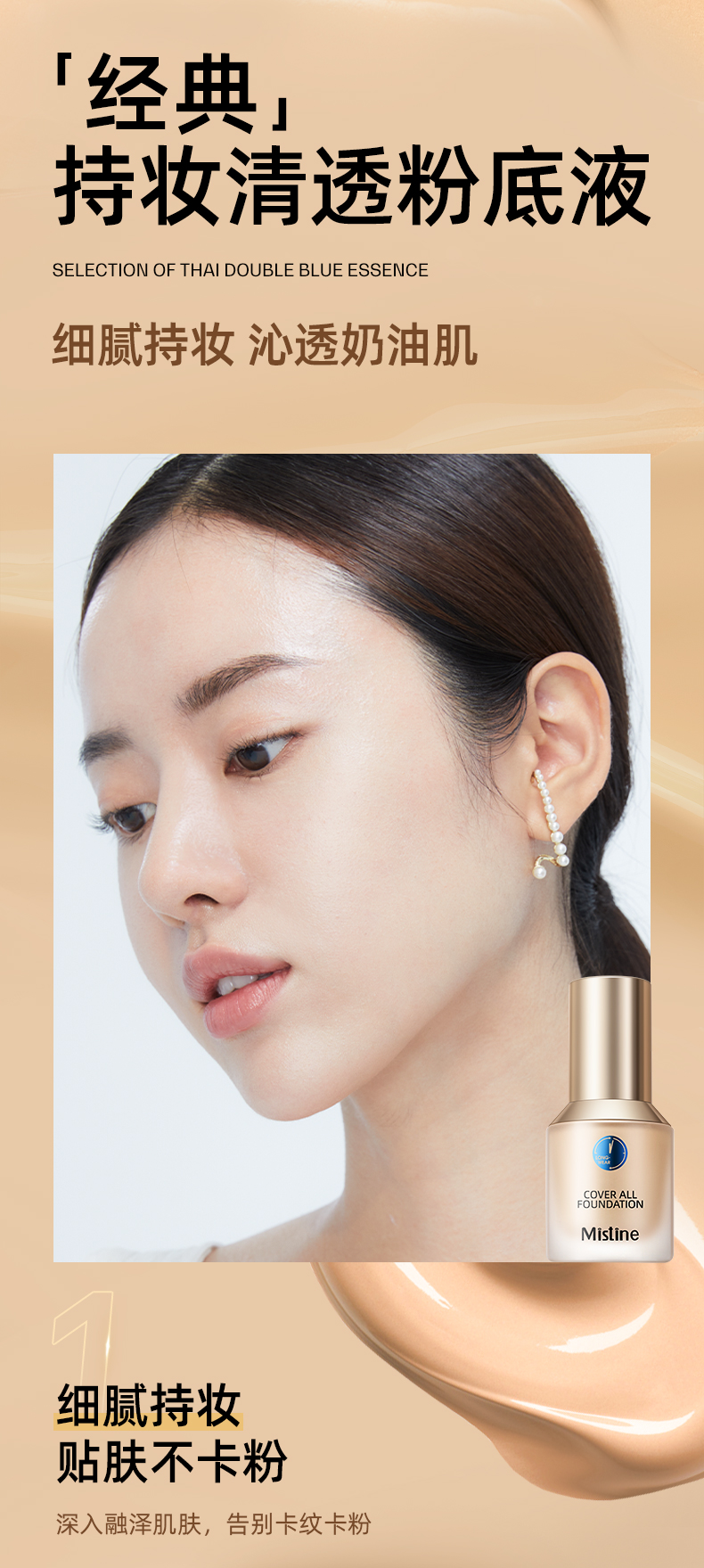 Mistine蜜丝婷金盾粉底液混干油皮遮瑕保湿持久不脱妆bb霜 30g NN120