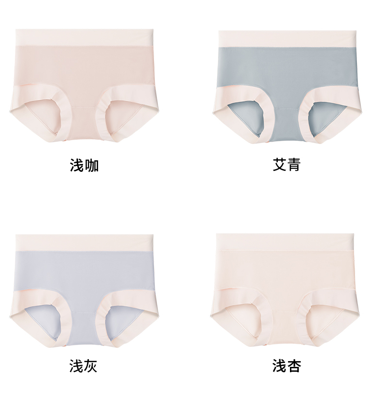 4条装猫人冰丝轻薄速干无痕女士内裤薄款中腰三角裤少女舒适简约透气短裤头MR7004-4A