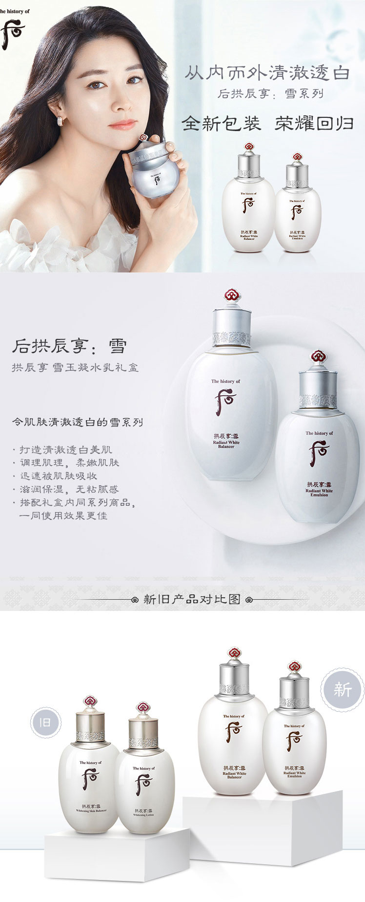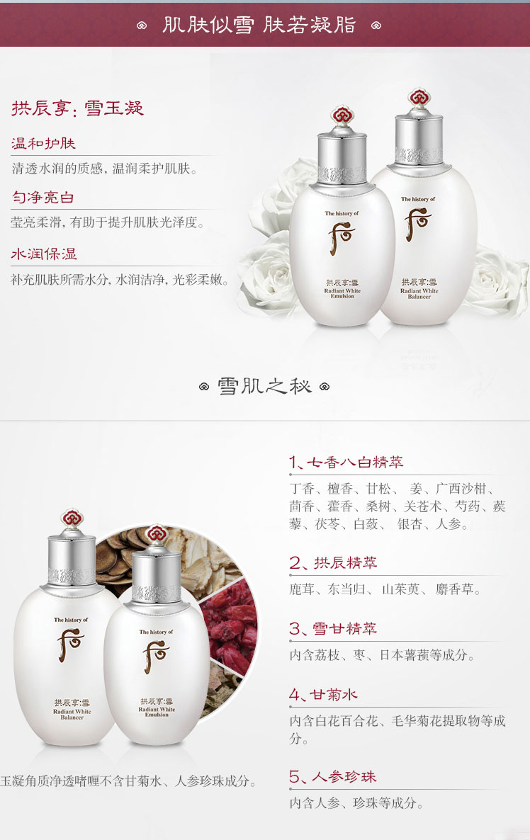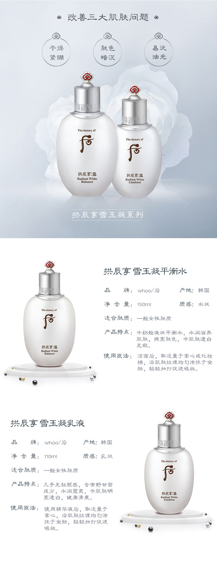 韩国WHOO后拱辰享雪玉凝爽肤水150ml+乳液110ml
