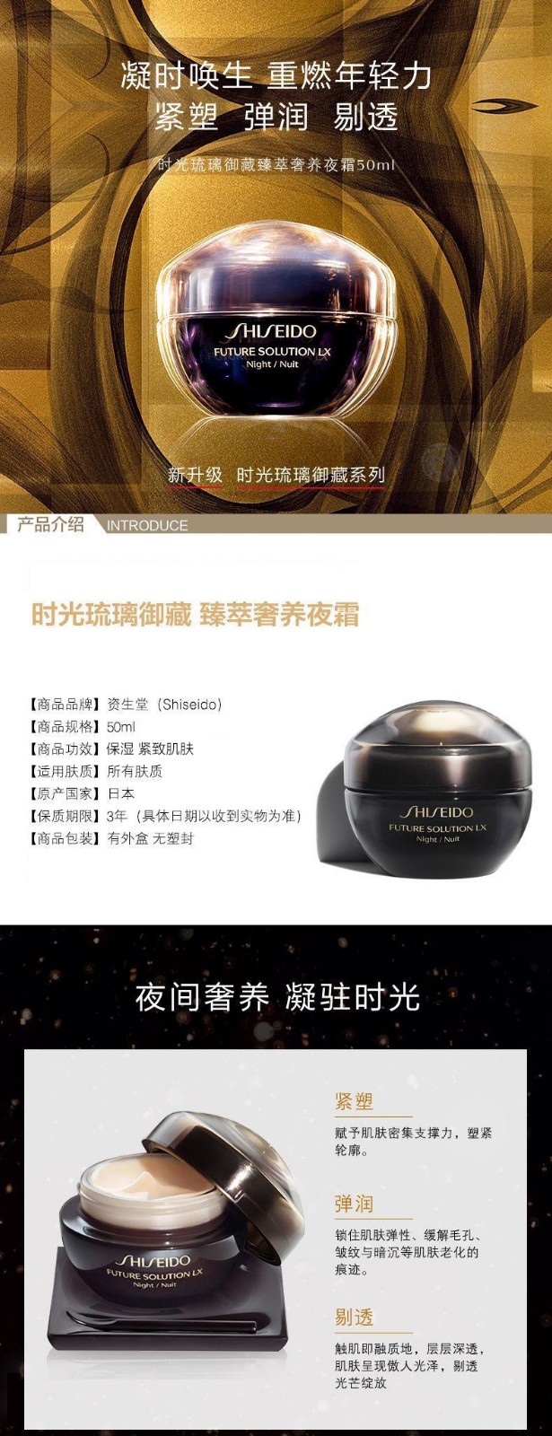 SHISEIDO 资生堂 时光琉璃御藏 夜间修护精华晚霜 50毫升