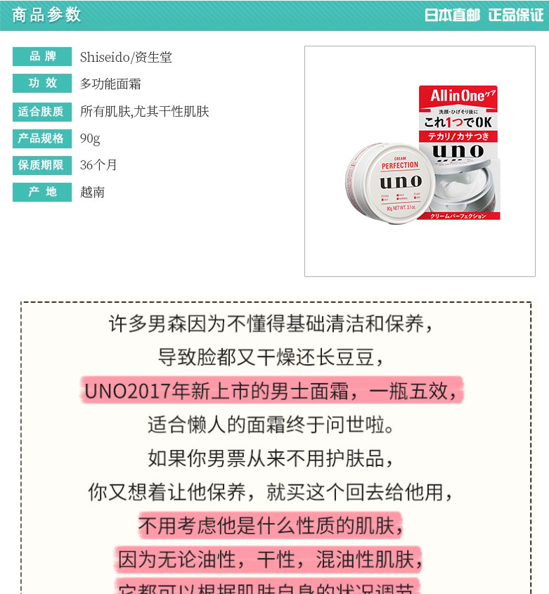 Shiseido资生堂UNO男士面霜 红色 款 90g