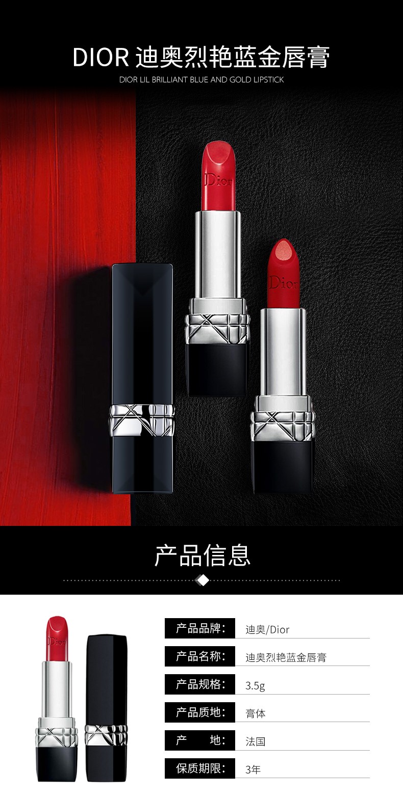 Dior/迪奥 全新烈艳蓝金唇膏 哑光999 3.5g 礼盒套装