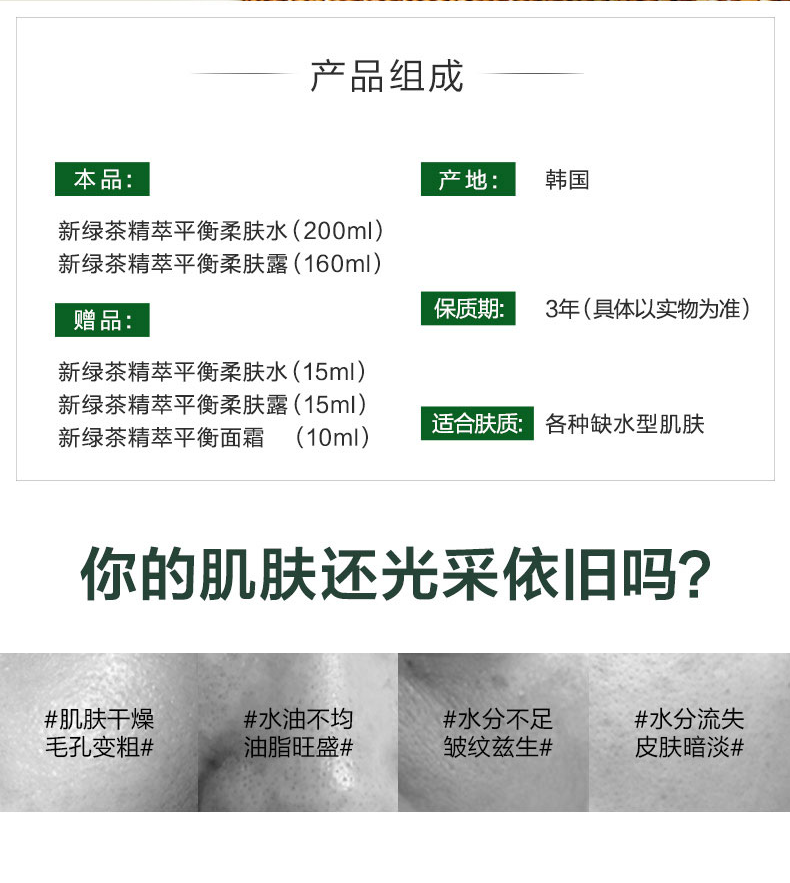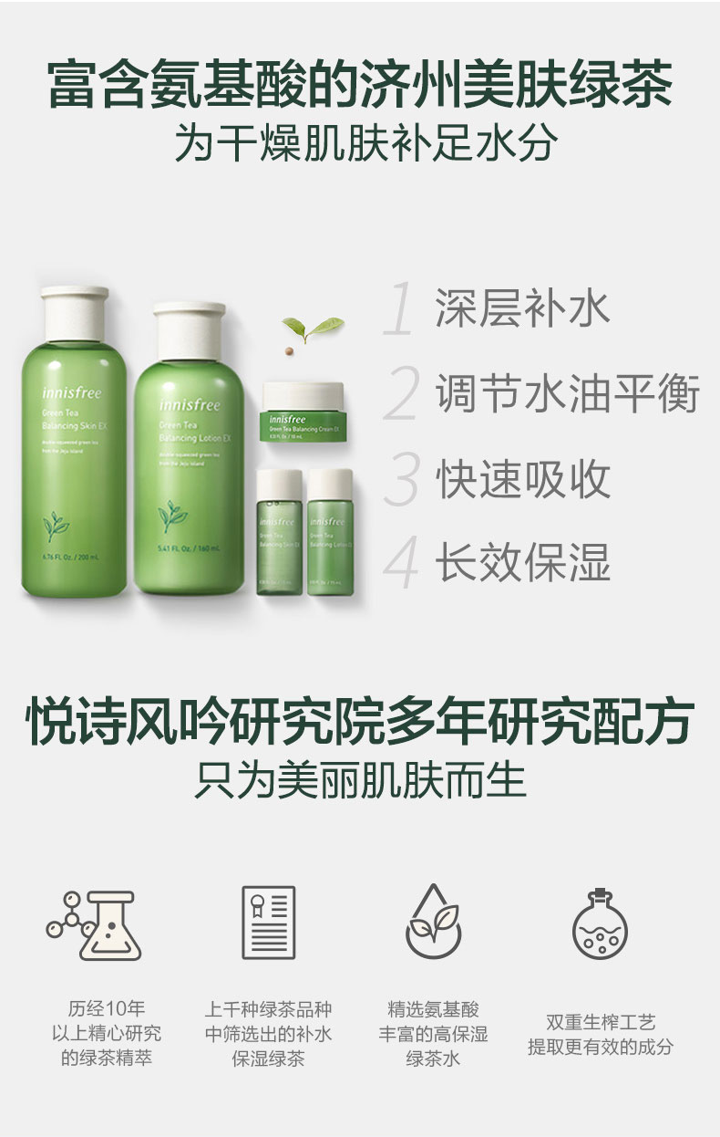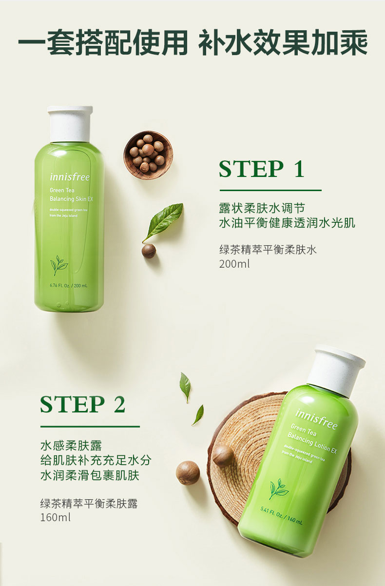 Innisfree/悦诗风吟绿茶精萃平衡水乳套装补水保湿清爽平衡水油