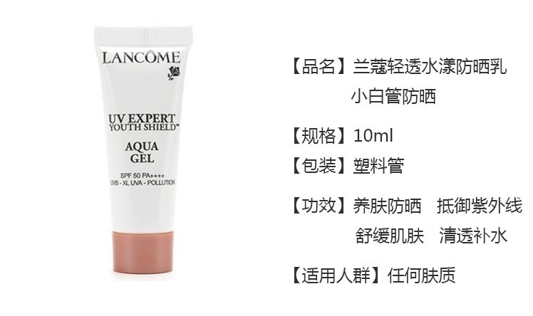 兰蔻UV小白管防晒霜 轻透水漾隔离防晒露10ml 清爽版