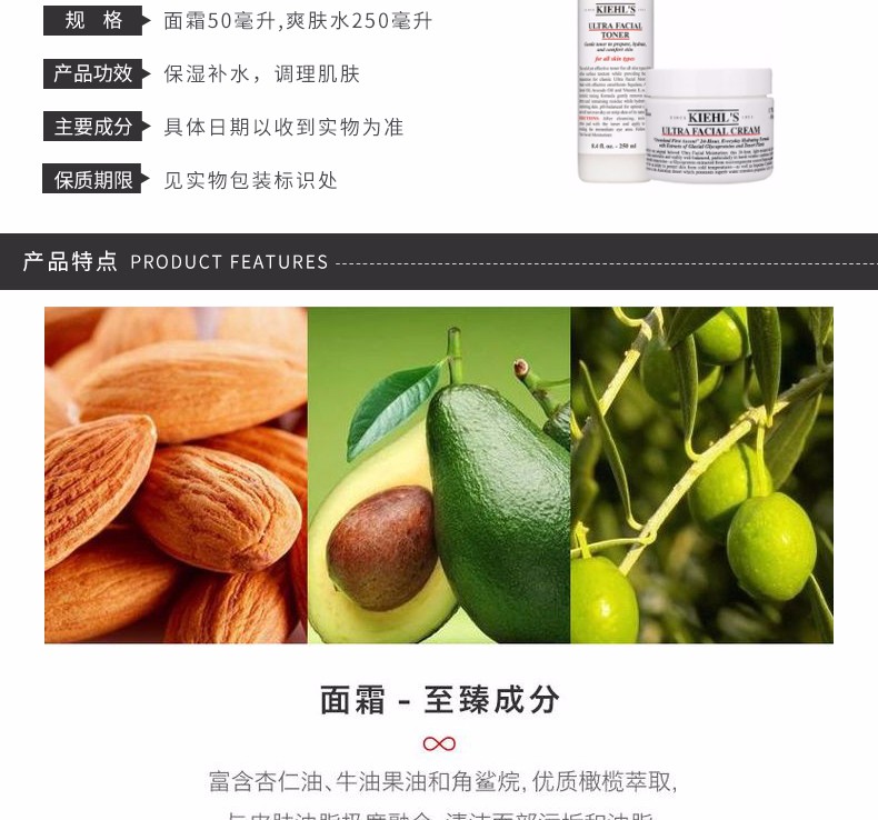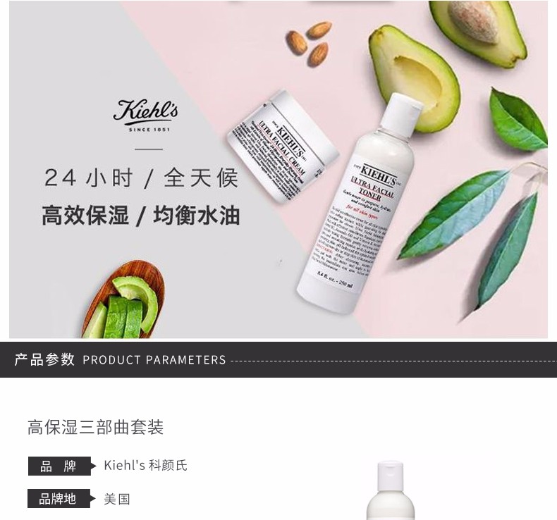 Kiehl's/科颜氏高保湿面霜 50ML+高保湿精华爽肤水 250毫升