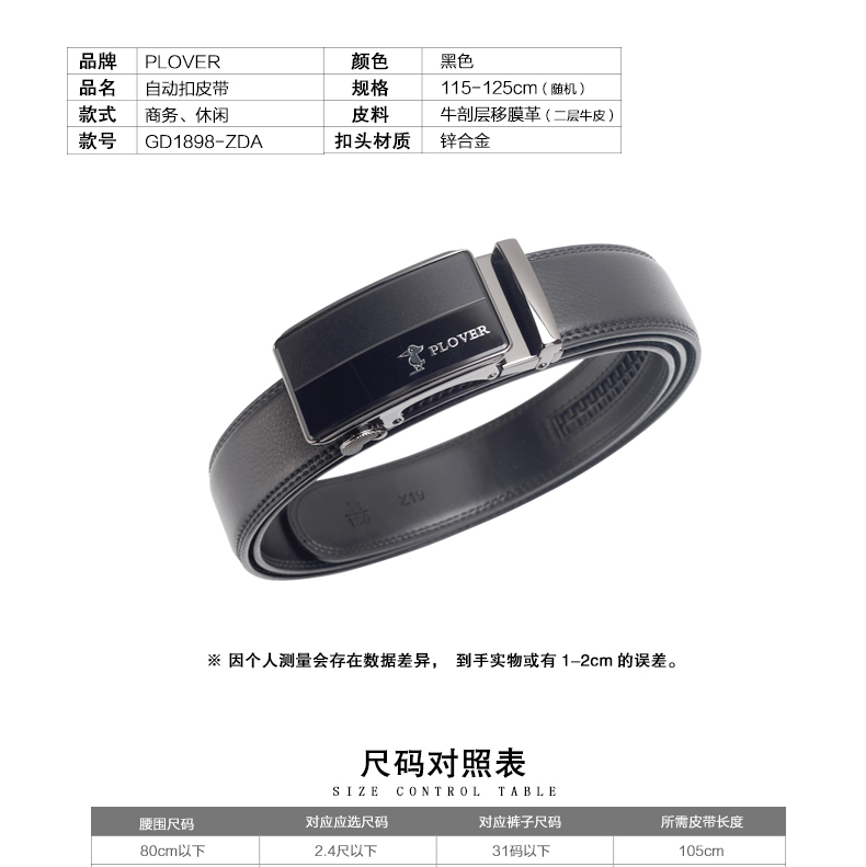 PLOVER香港啄木鸟腰带皮带裤带黑色GD1898-ZDA