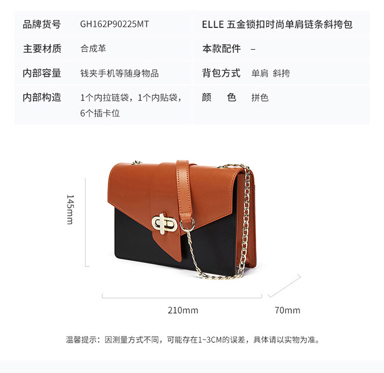 ELLE 五金锁扣时尚单肩链条斜挎包 GH162P90225
