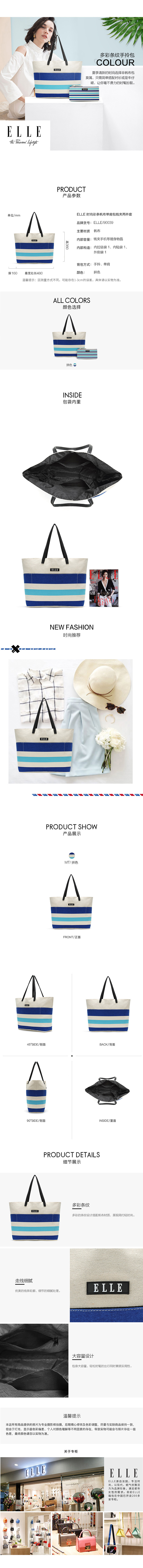 ELLE 时尚彩条帆布单肩包钱夹两件套 GH162P90039
